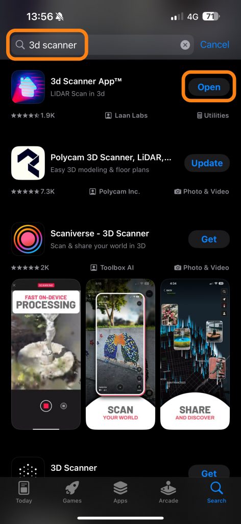 3D scan can be done only with an iPhone 12 Pro or later iPhone Pro with Lidar